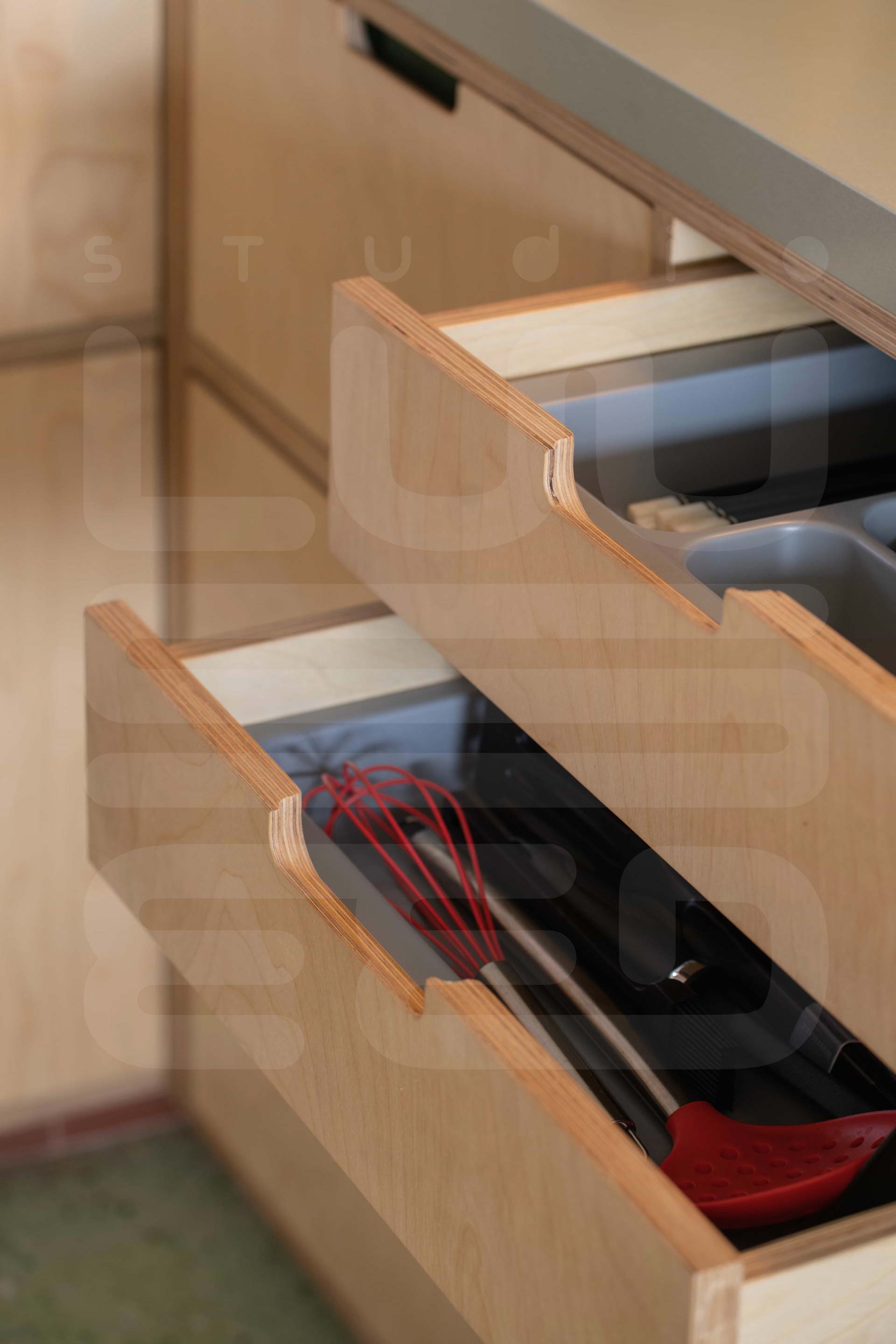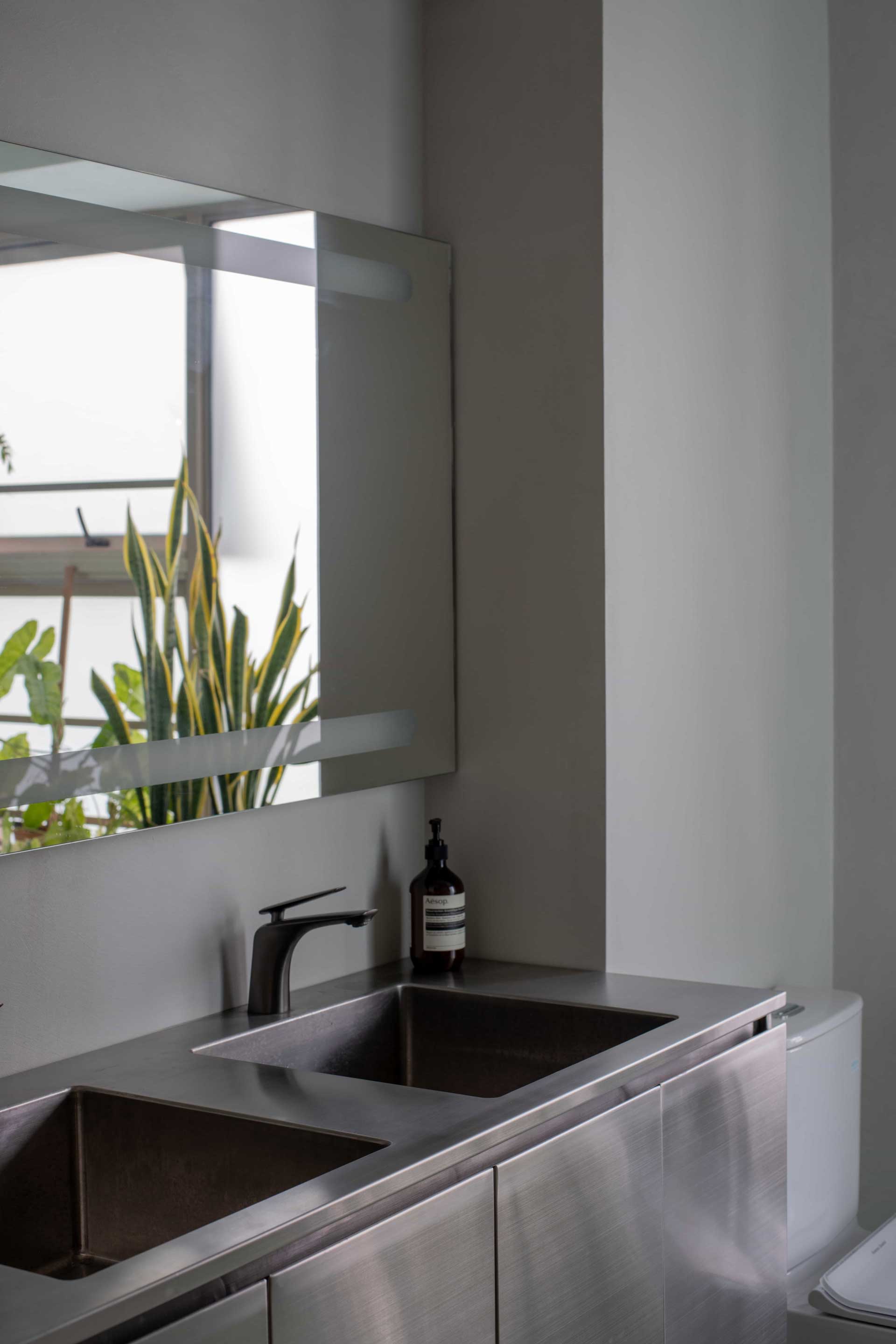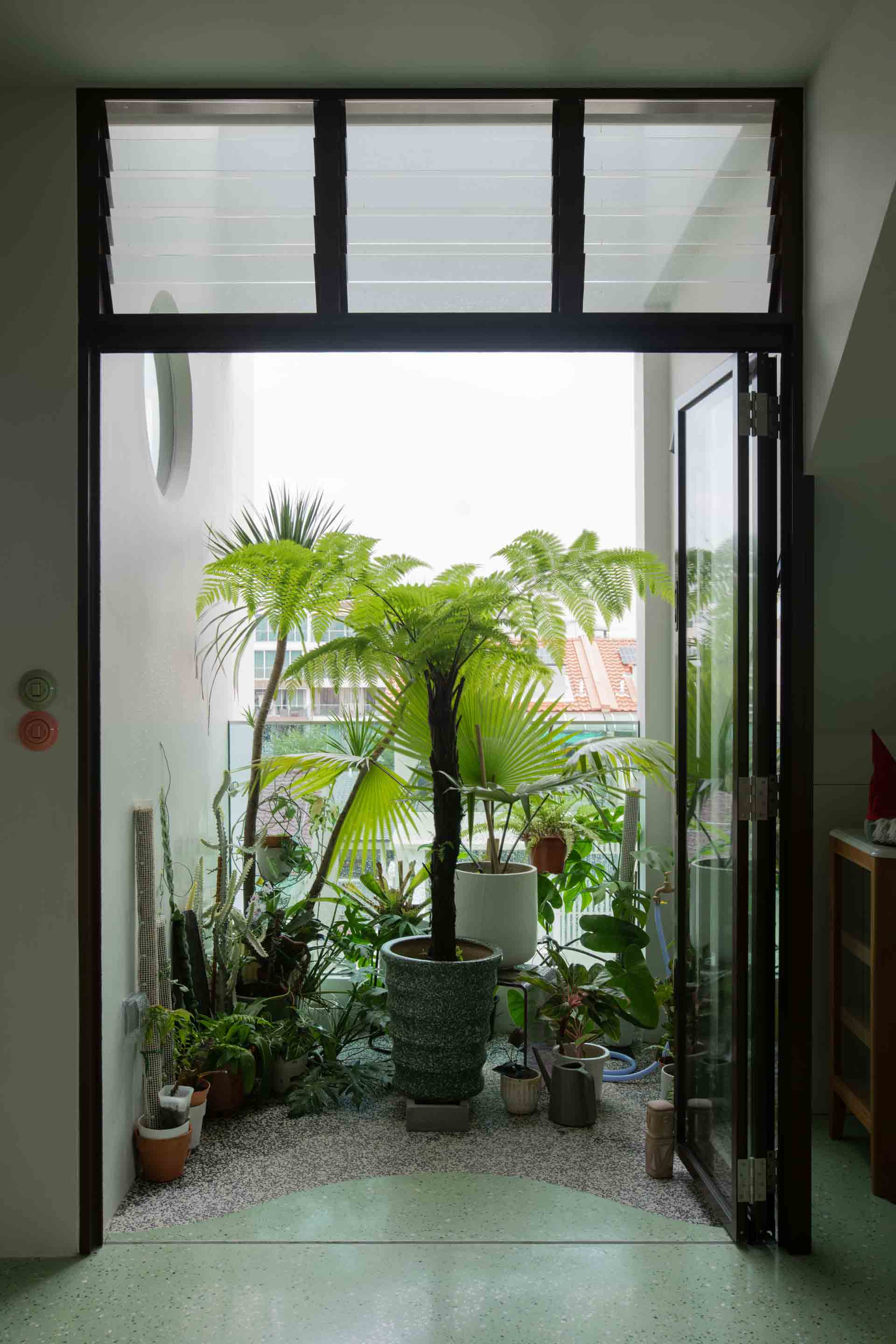 A defining feature of the penthouse is the Sky Pod, ingeniously designed to bring a touch of nature into the heart of the home. Enhanced by a preference for natural materials such as birch plywood cabinetry, which harmonizes seamlessly with the owners' treasured teakwood furniture collection and carefully curated light fixtures, the space achieves a distinctive and eclectic aesthetic.